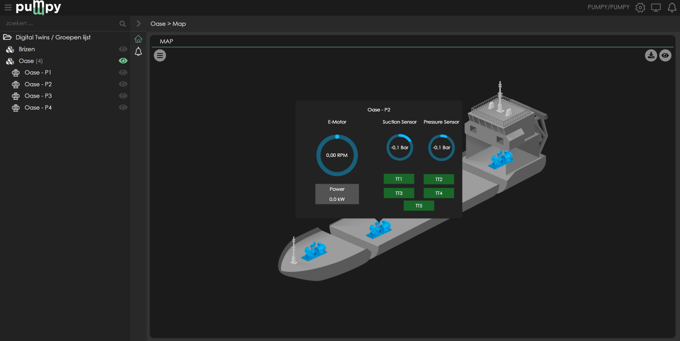 An example is Pumpy, an innovative, comprehensive solution for maritime pumps. This product optimizes pump performance, enhances safety, and reduces operational costs using digital twin technology. The system integrates IoT connectivity, advanced data analytics, and digital twin modelling, enabling real-time monitoring, predictive maintenance, and remote diagnostics.